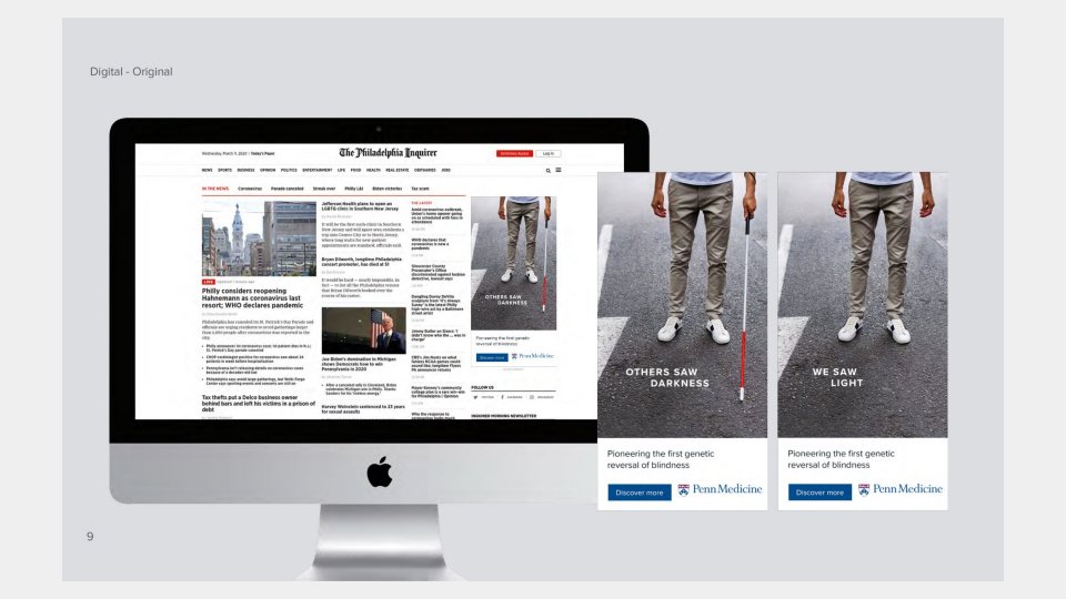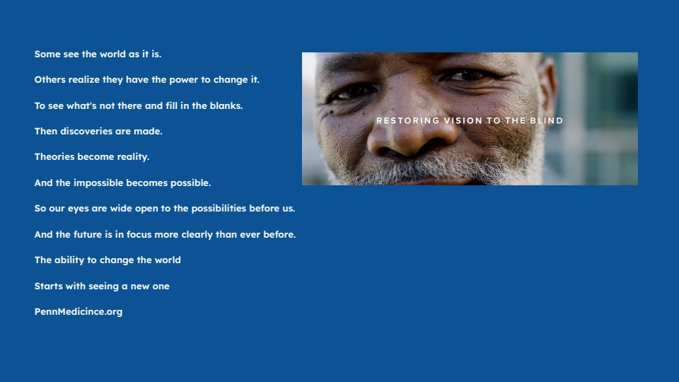 Some see the world as it is. Others realize they have the power to change it. Because the ability to change the world starts with seeing a new one. This campaign focuses on Penn Medicine’s vision and comes through a freelance collaboration with Senior AD Darlene Hawver and Tilt Chief Creative Officer Shanky Das.